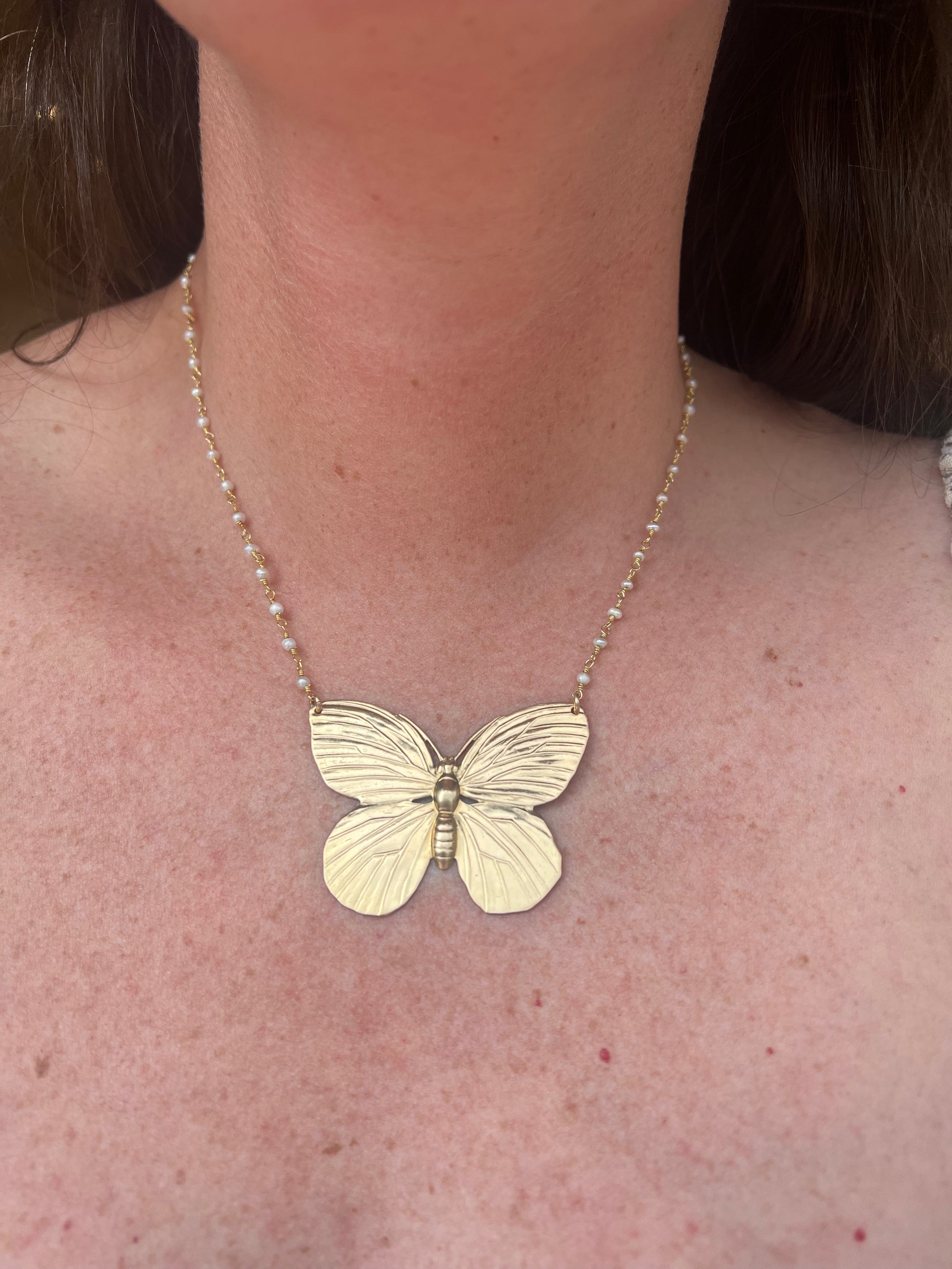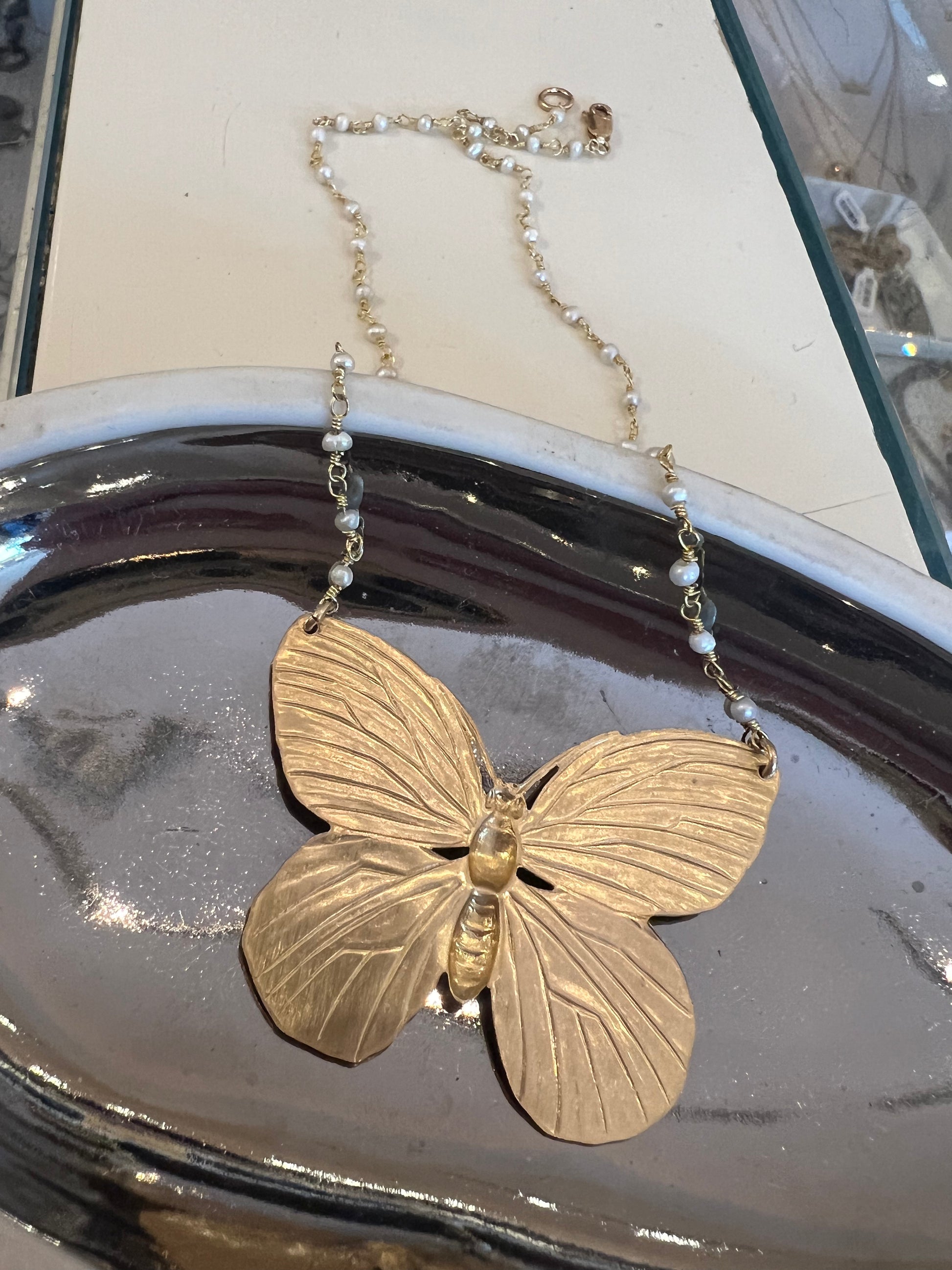 14 K gold filled butterfly on little pearl chain.
