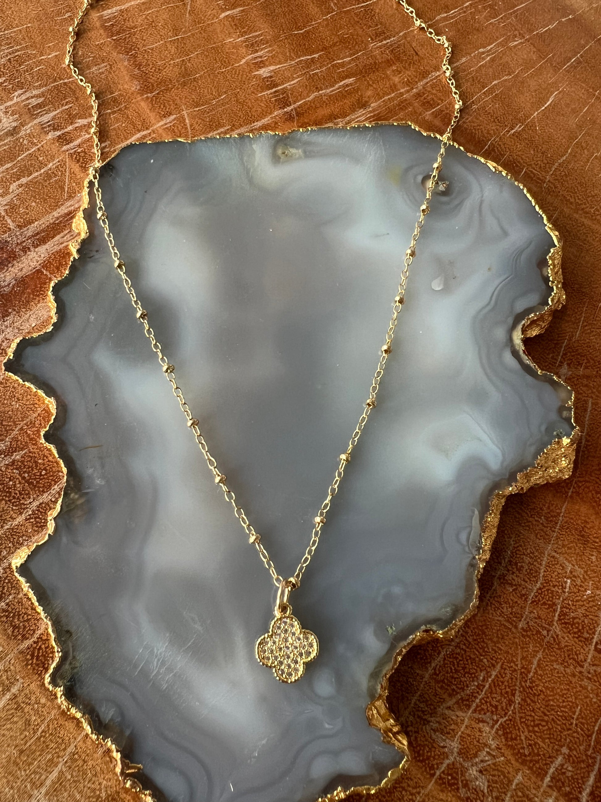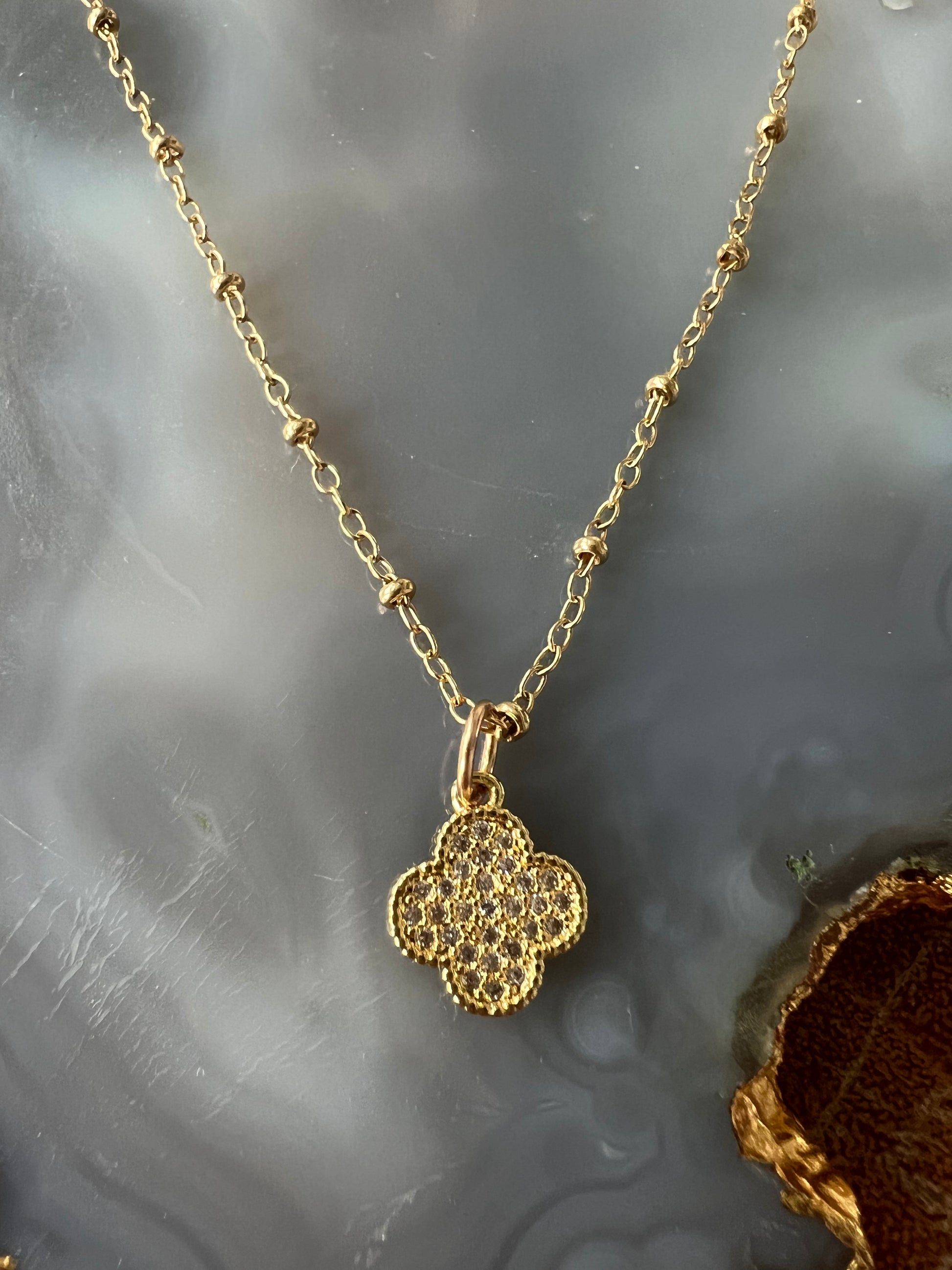 14K gold filled ball chain necklace with pave clover charm.