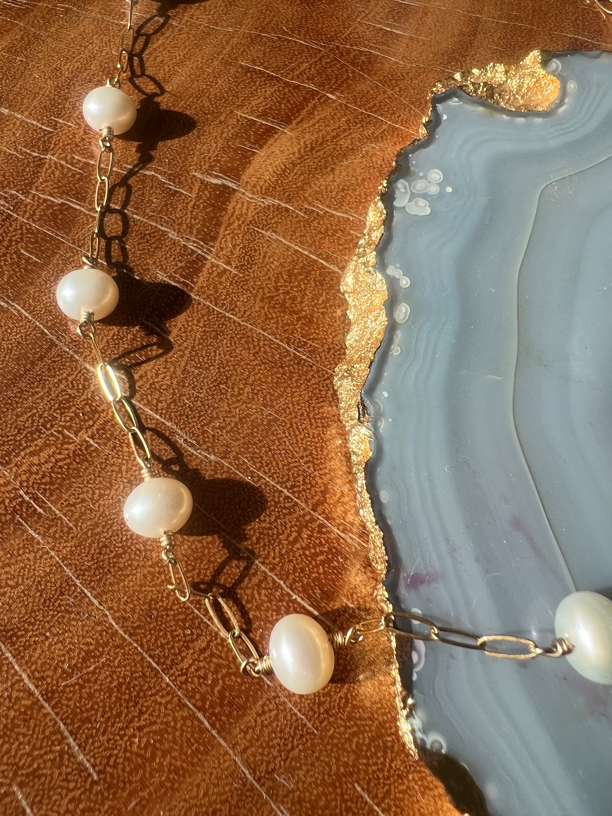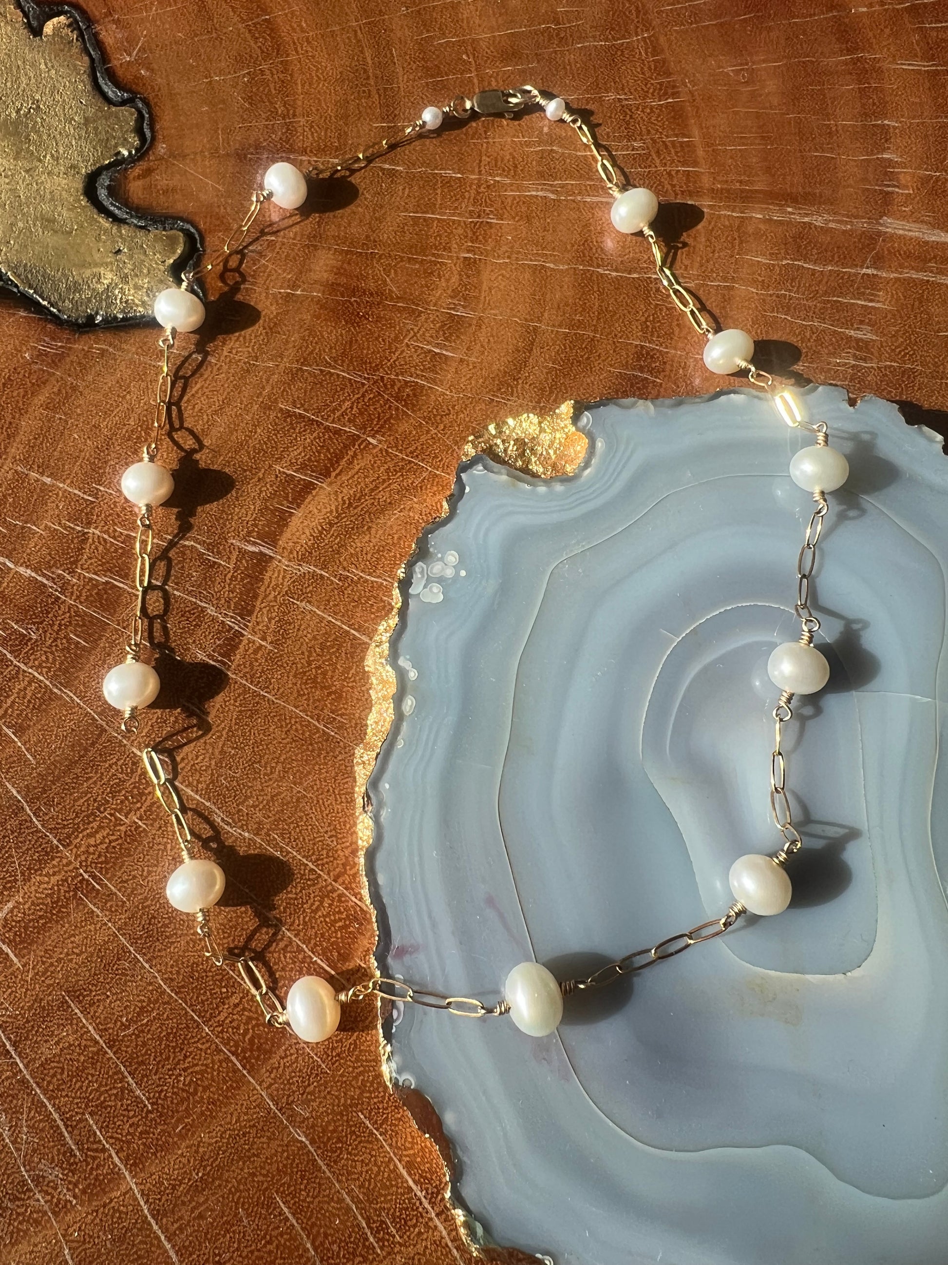 14K gold filled chain with multi freshwater pears.