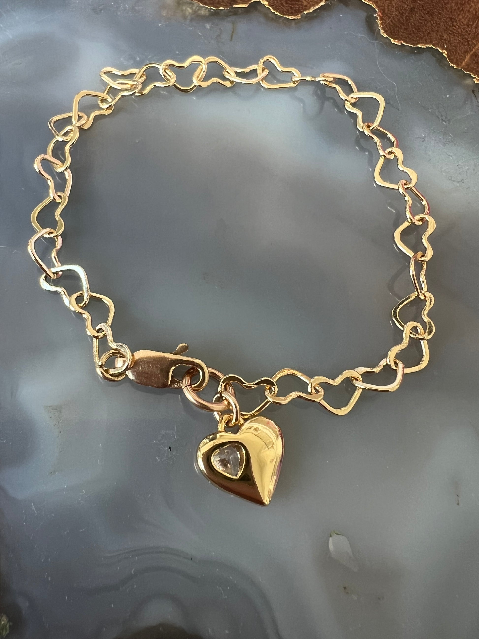 14K gold filled open heart bracelet with heart charm with cz heart.
