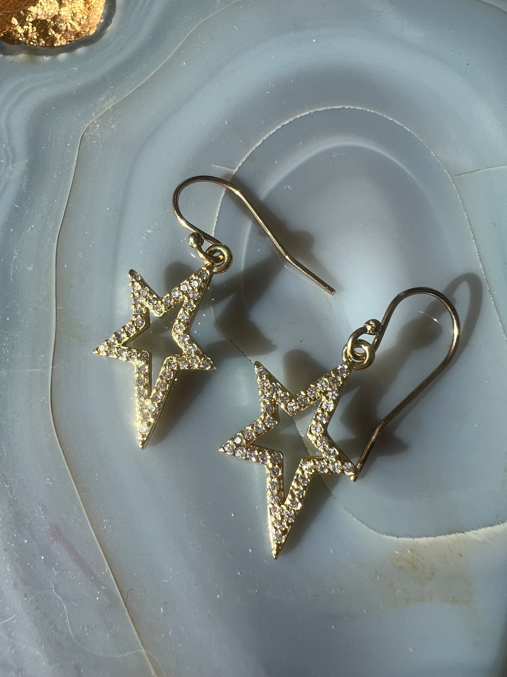 14 K gold filled earrings with open pave diamond stars.