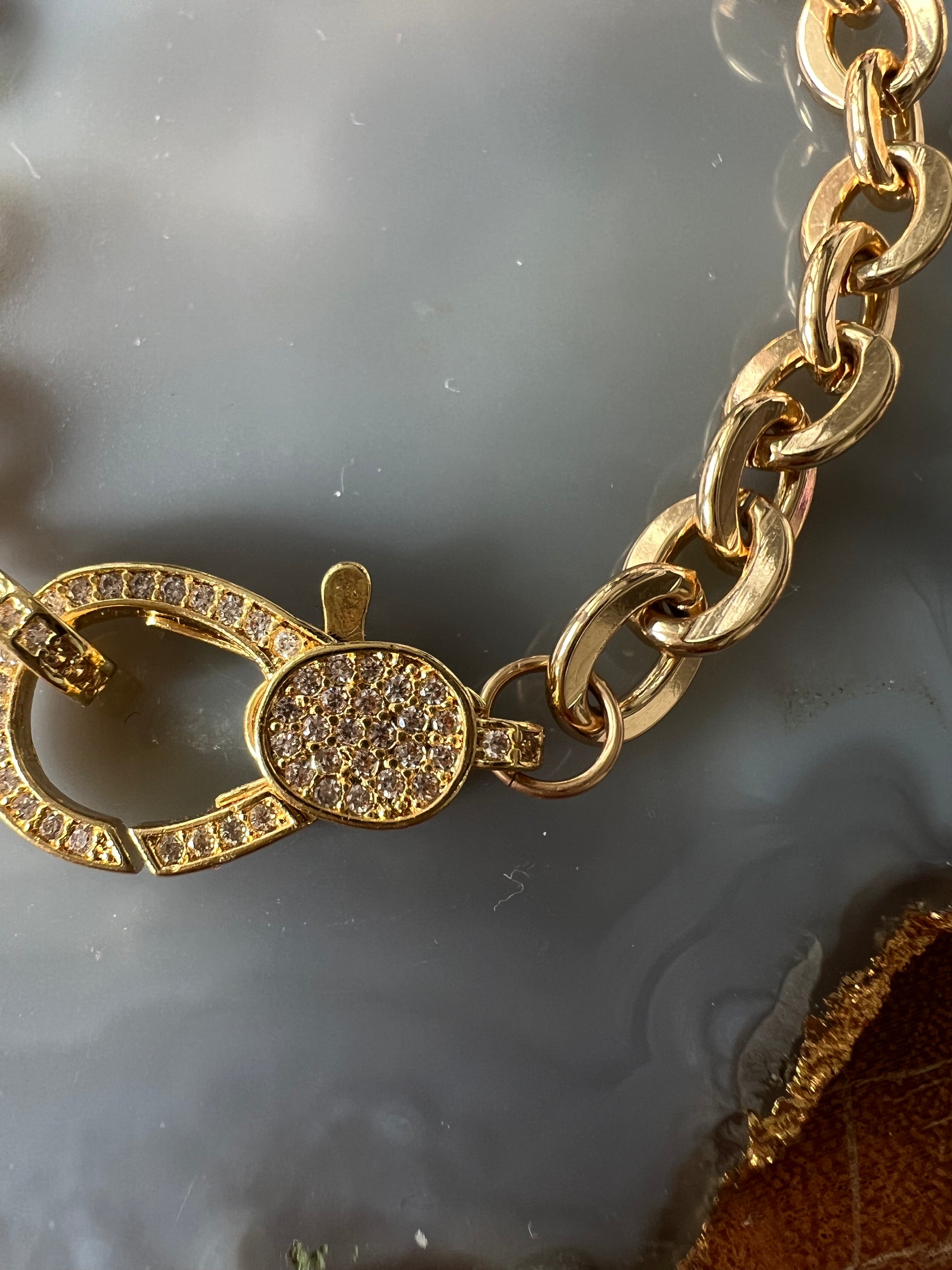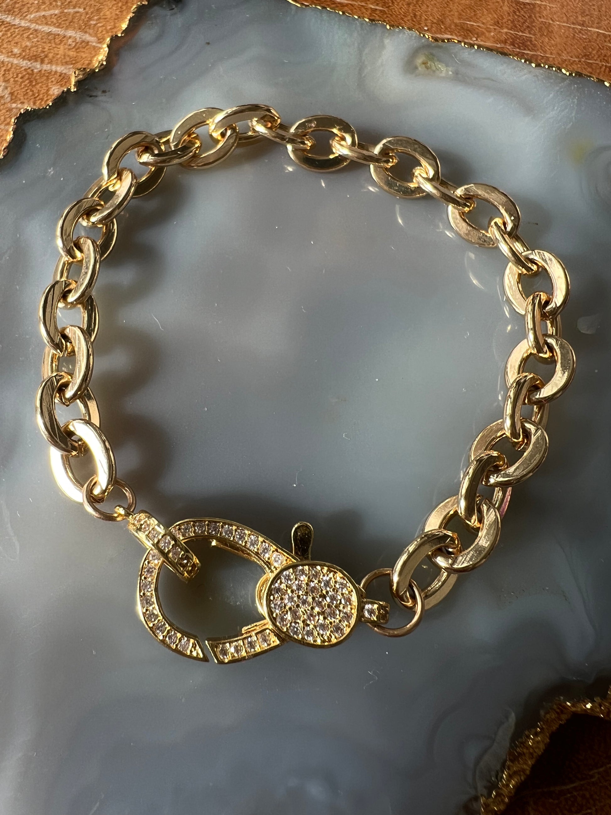 14K Gold filled small oval link bracelet with pave lobster claw clasp
