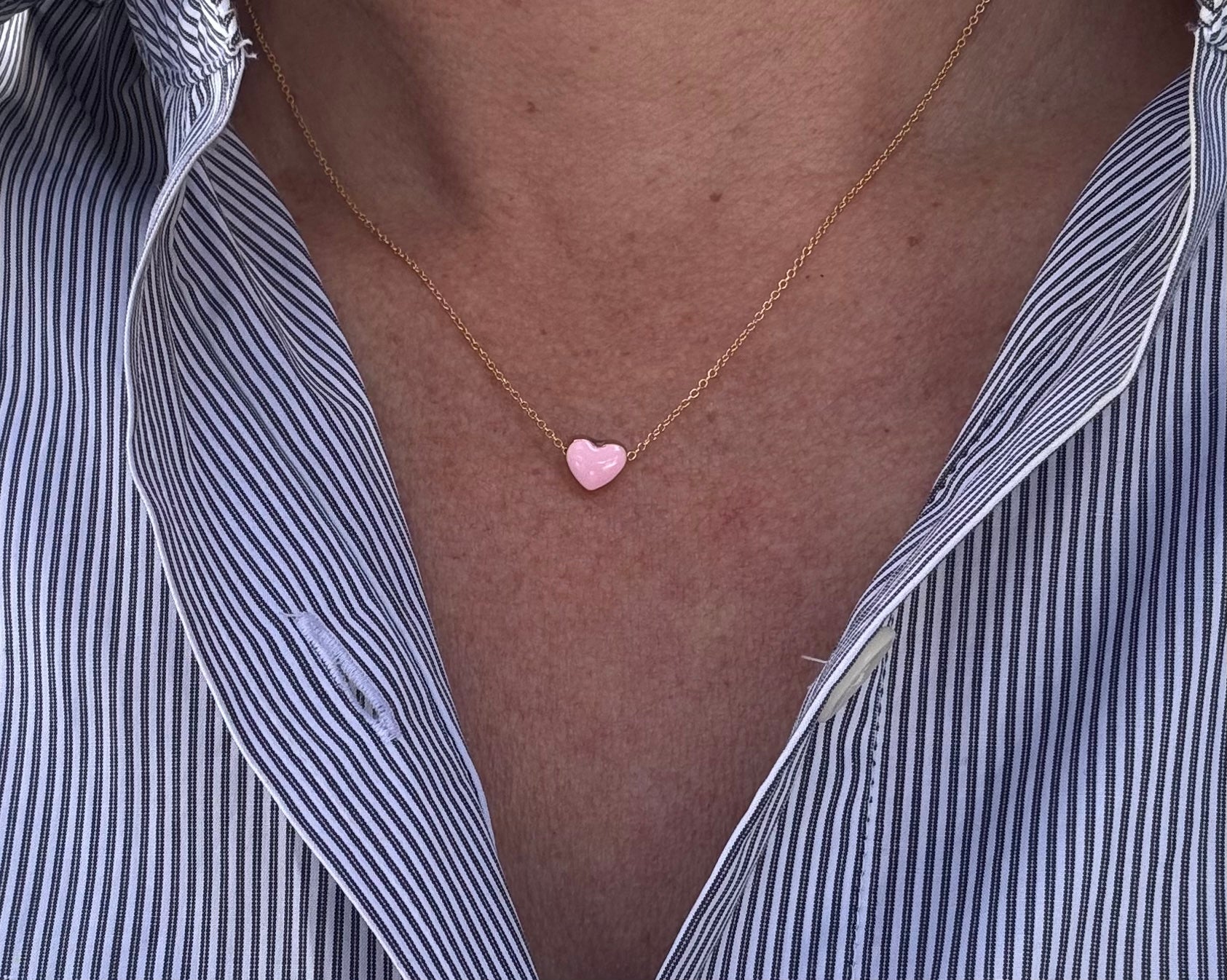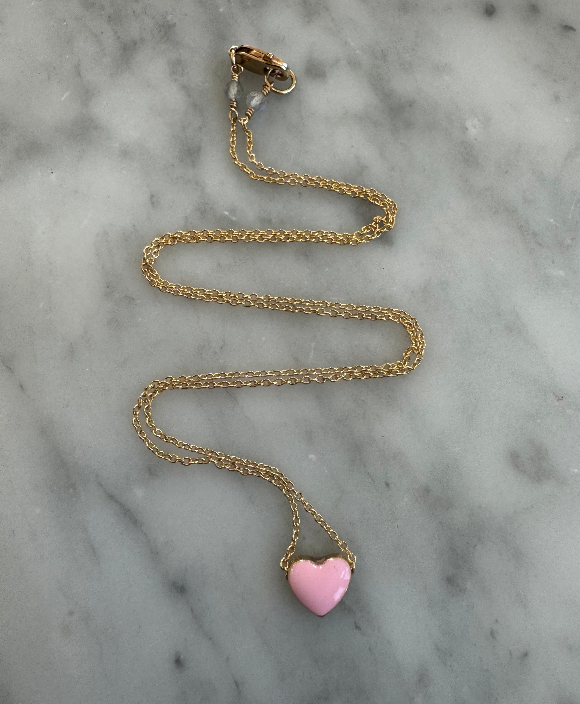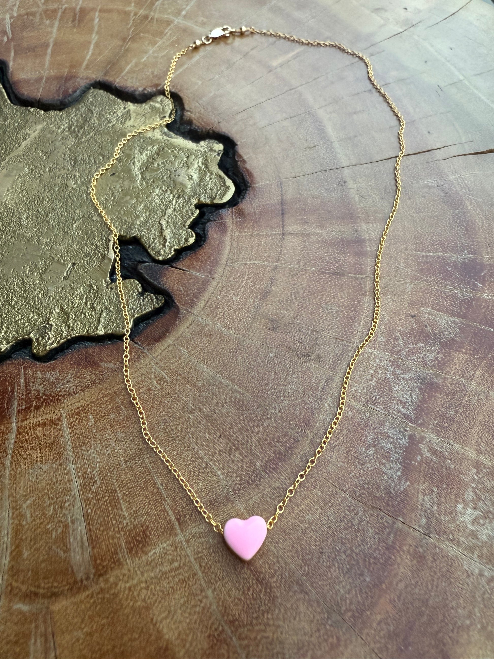 14 gold fill enamel heart on 16 inch gold filled chain.