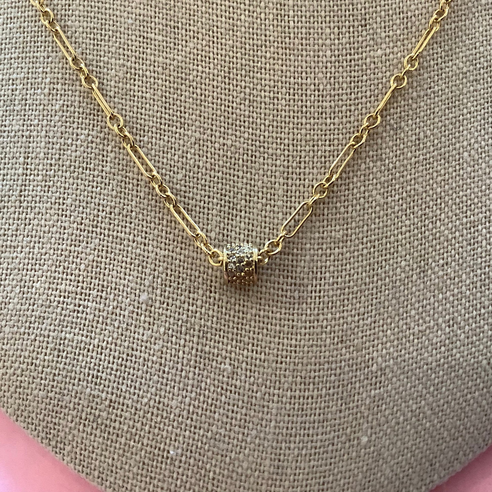 CZ Rondelle bead on 14k gold filled paperclip chain.