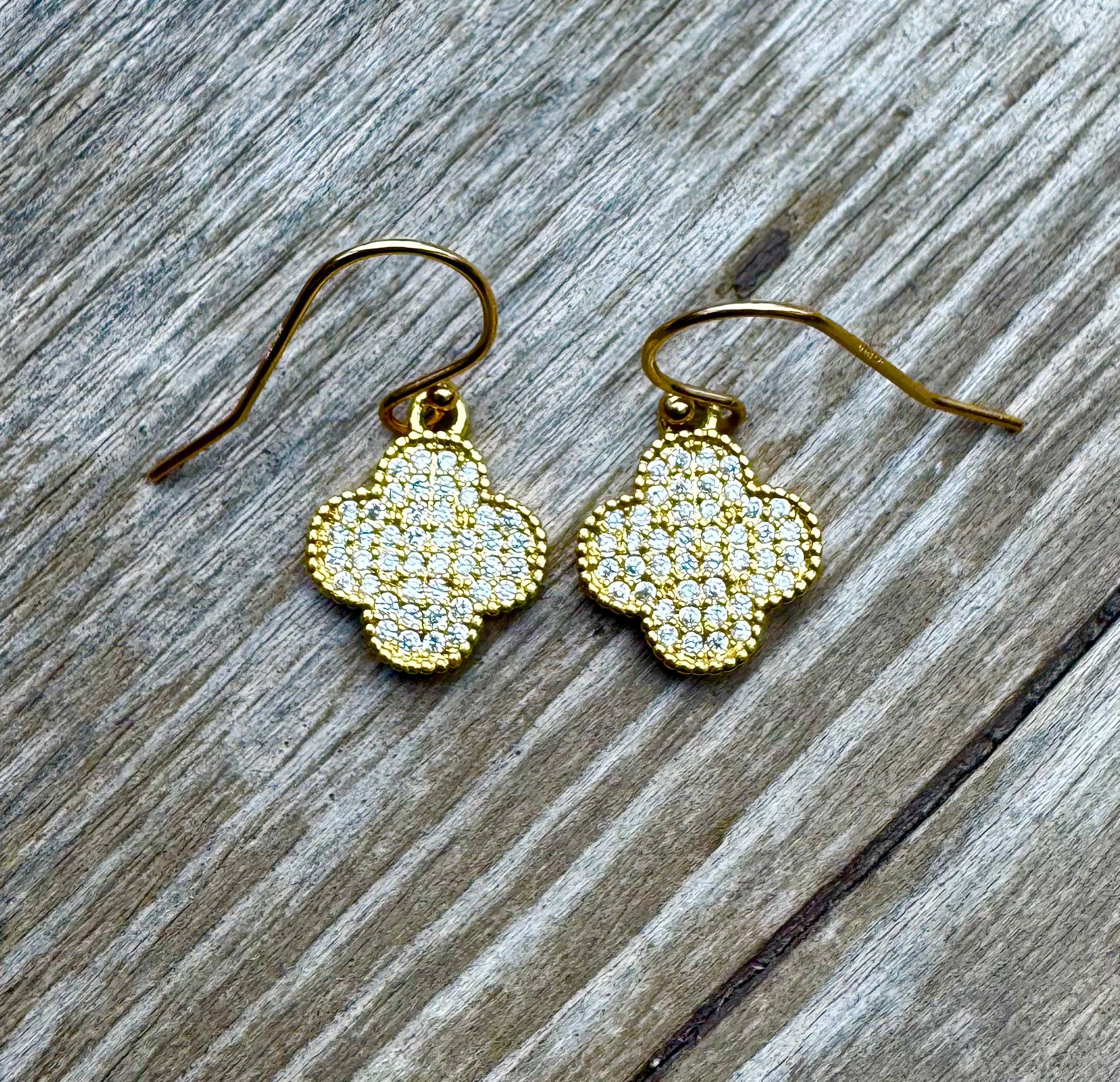 Small Pave Gold Dangle Clover Earrings