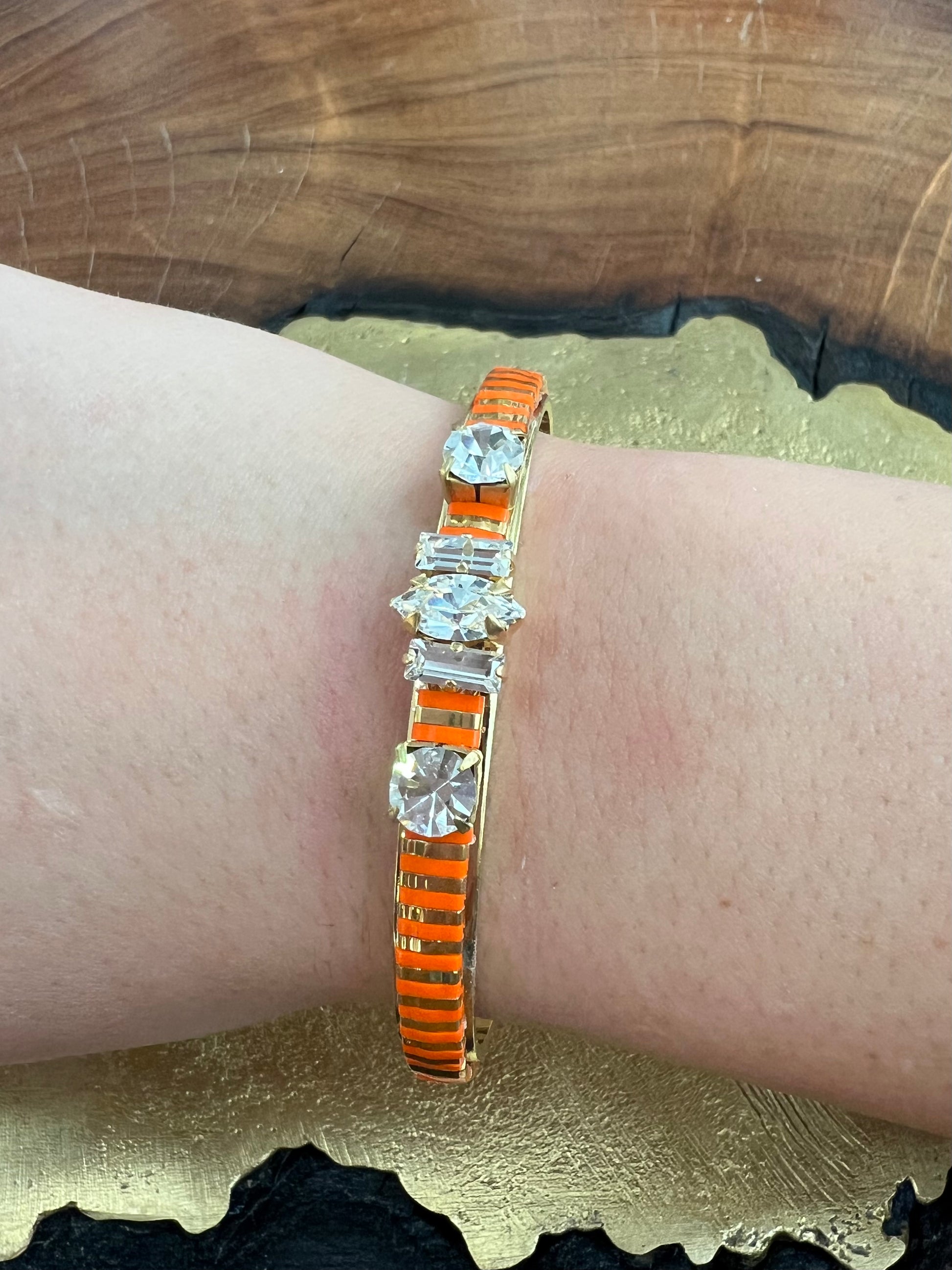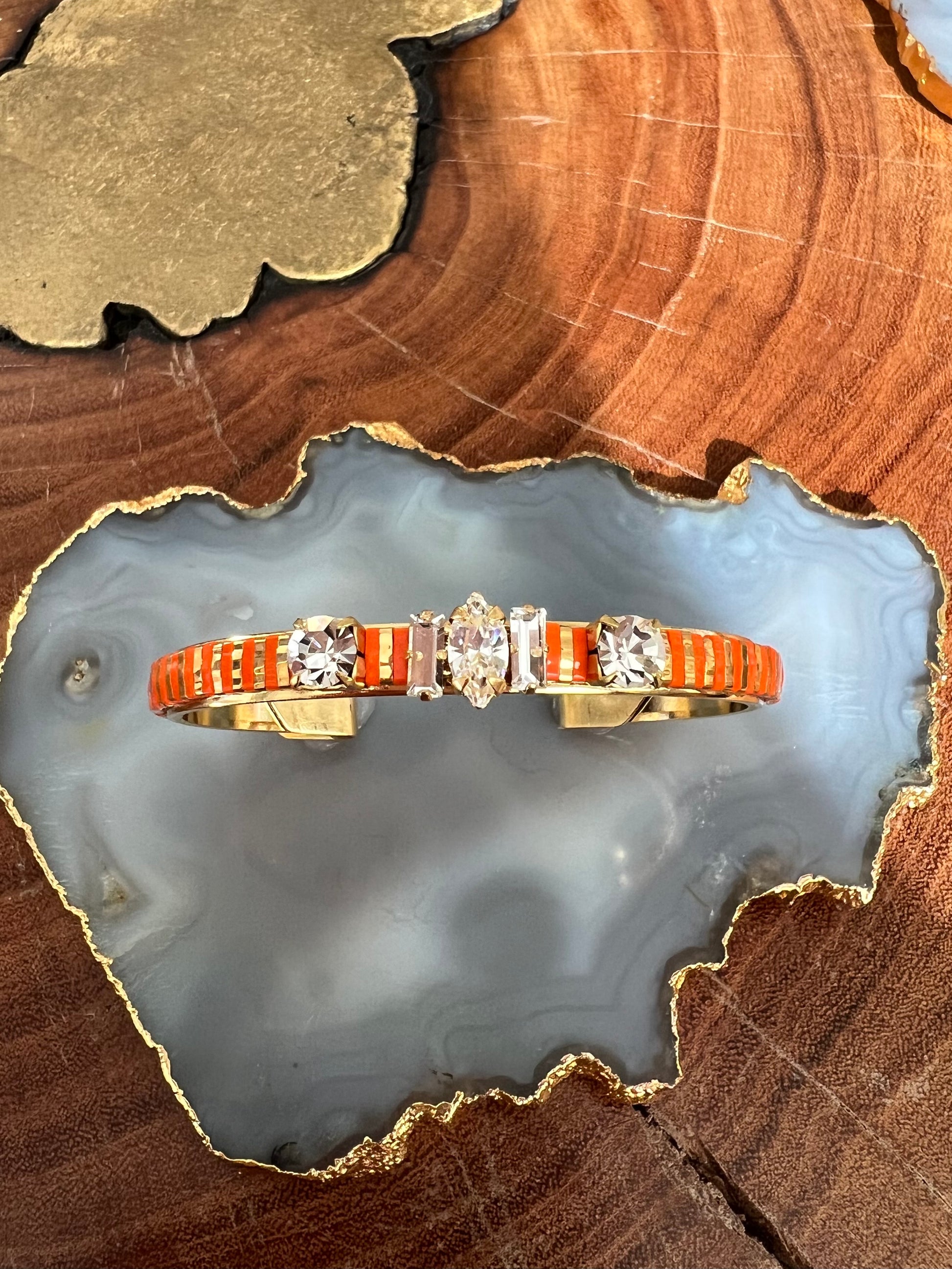 22K gold-plated brass; glass stones. 2.5″ diameter