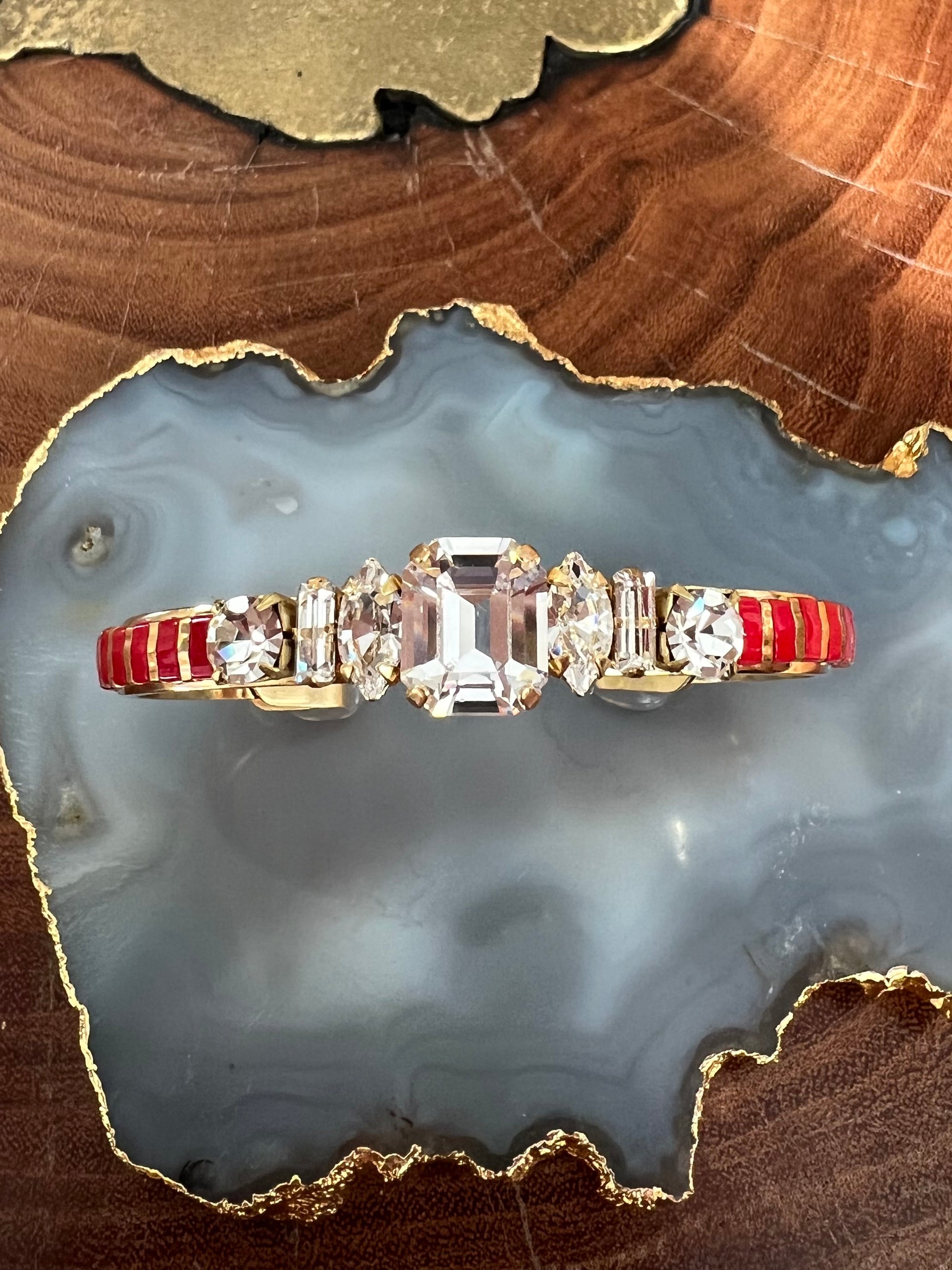 22K gold-plated brass; glass stones. 2.5″ diameter