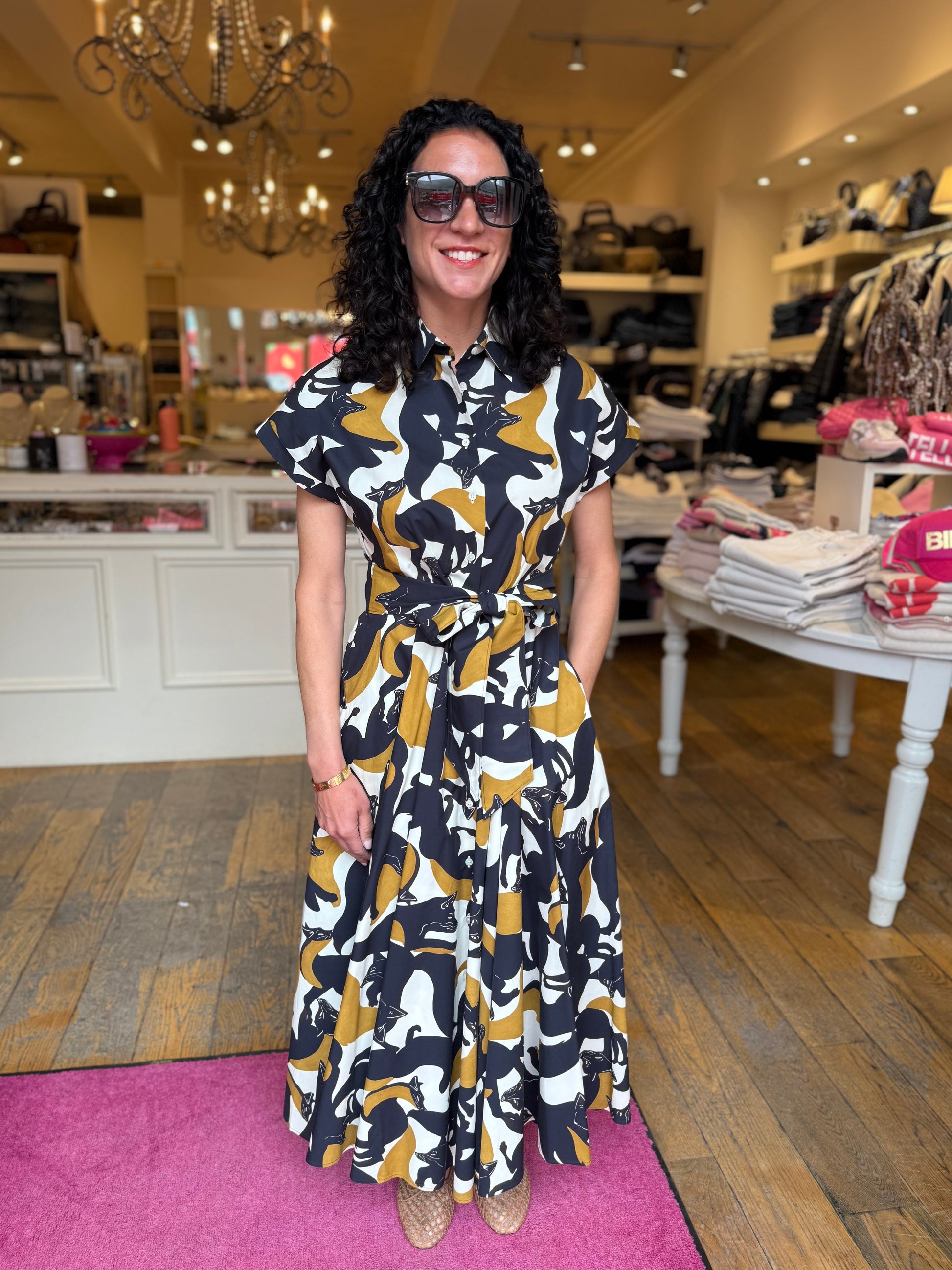 Button down midi dress with cinched waist and belt by Sara Roka. Made in Italy.