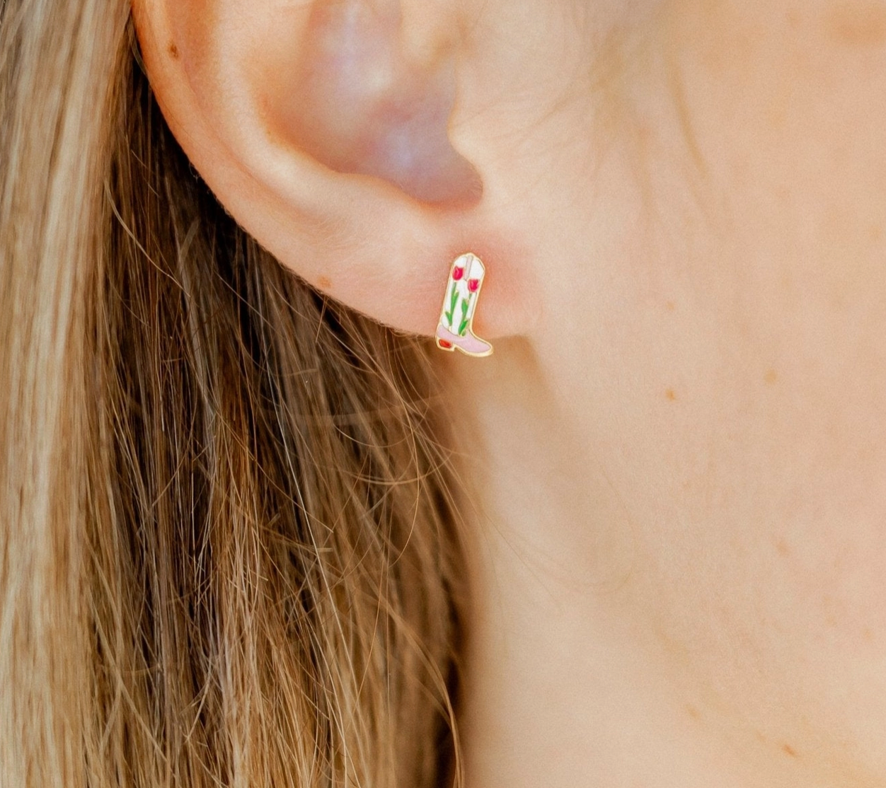 Screwback StudEarrings- Tulip Cowgirl Boot