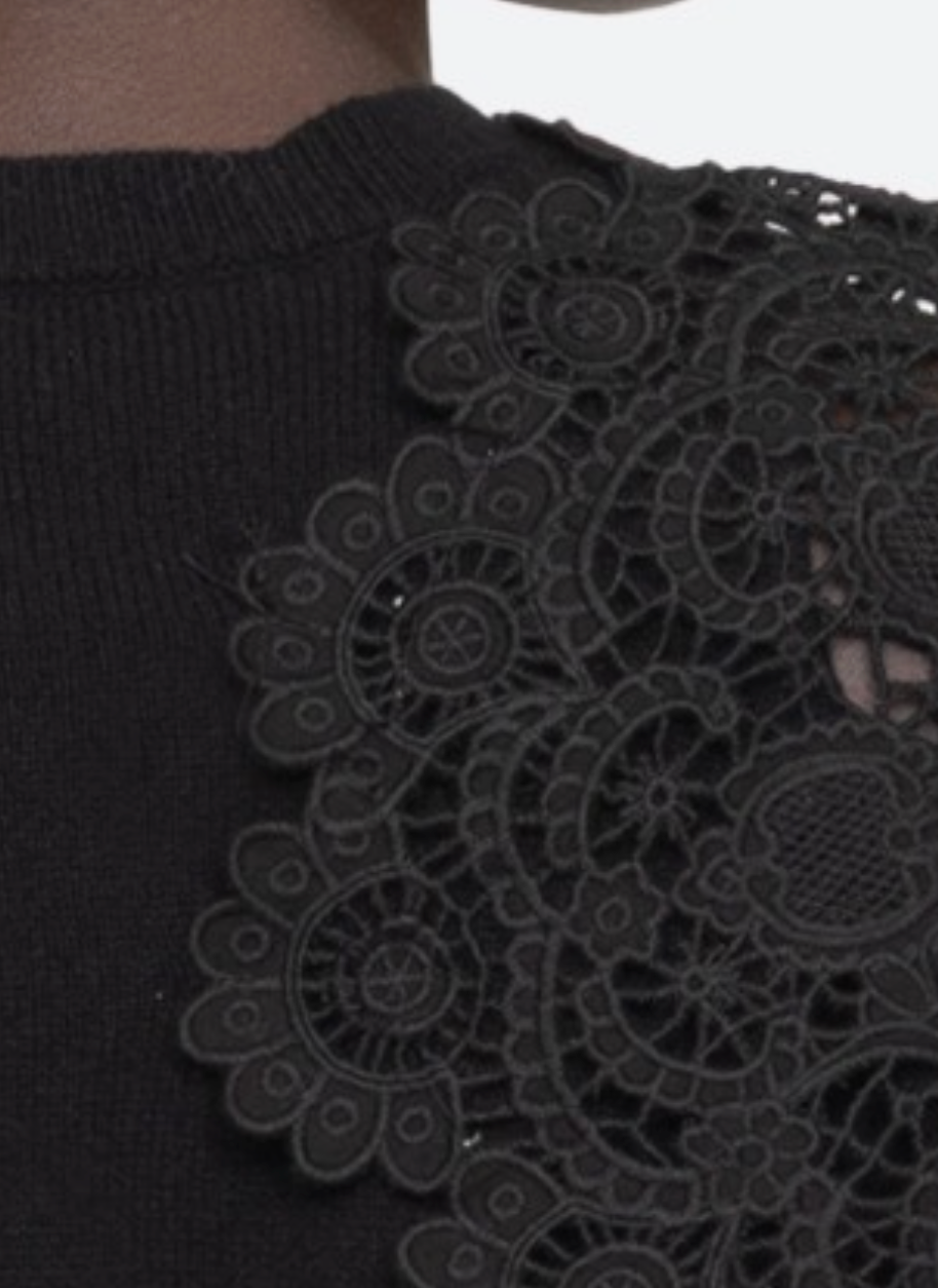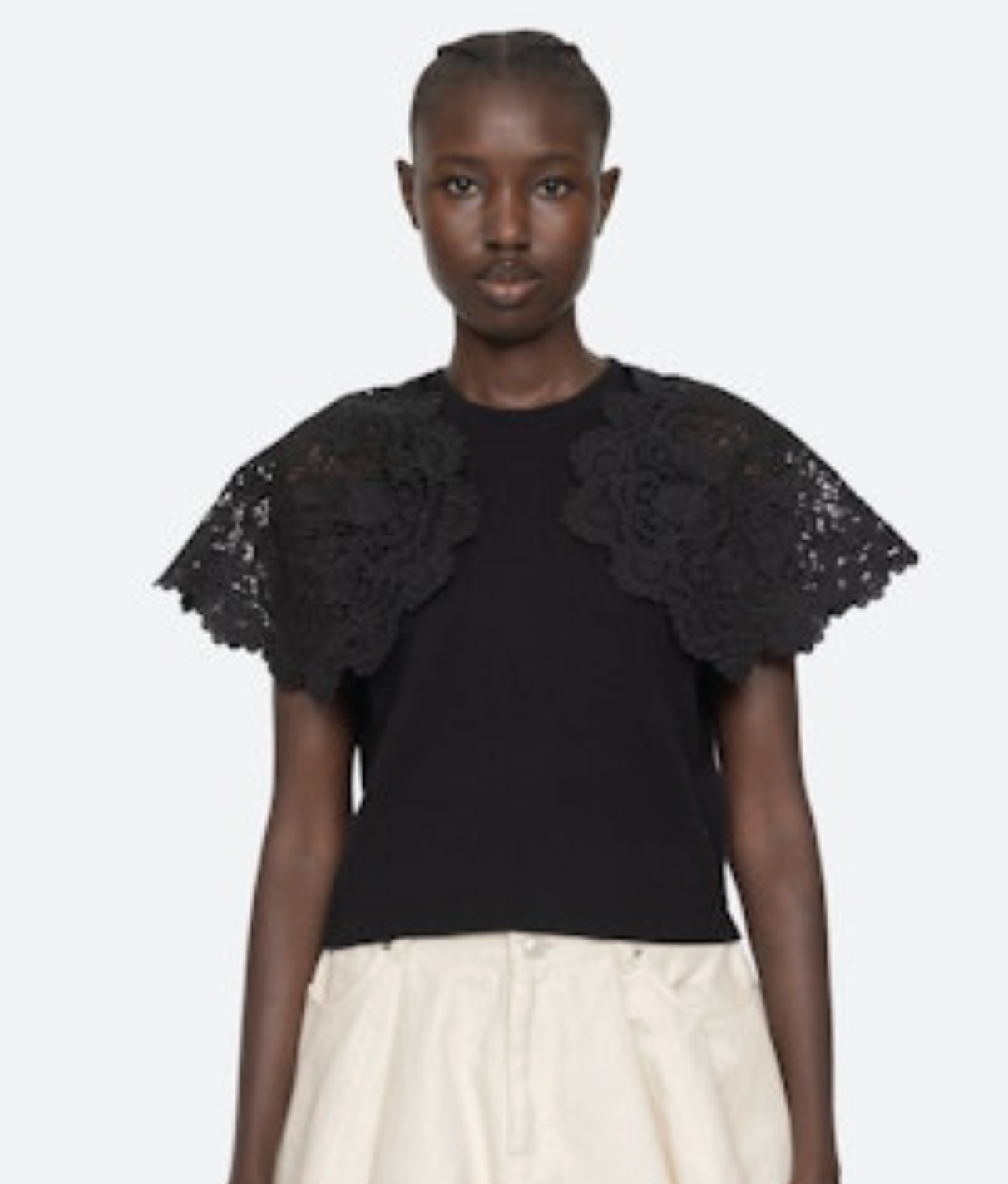 Knit top with embroidered shoulder cape short sleeves.