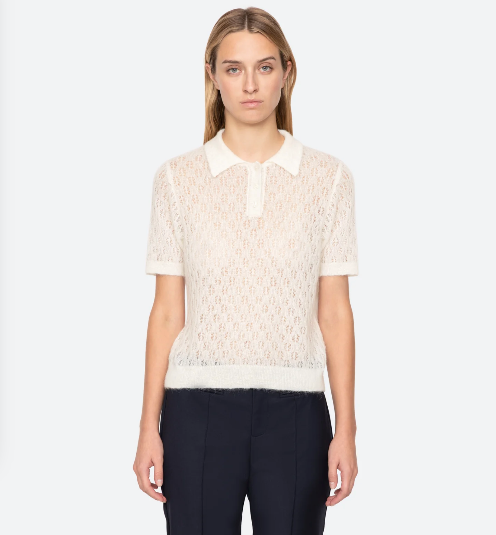 The Teagan short sleeve sweater is crafted from soft alpaca wool and designed in a classic polo silhouette. It features a button-front placket and short sleeves, offering a refined yet relaxed approach to everyday dressing.