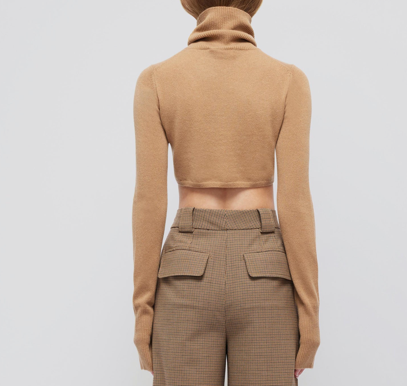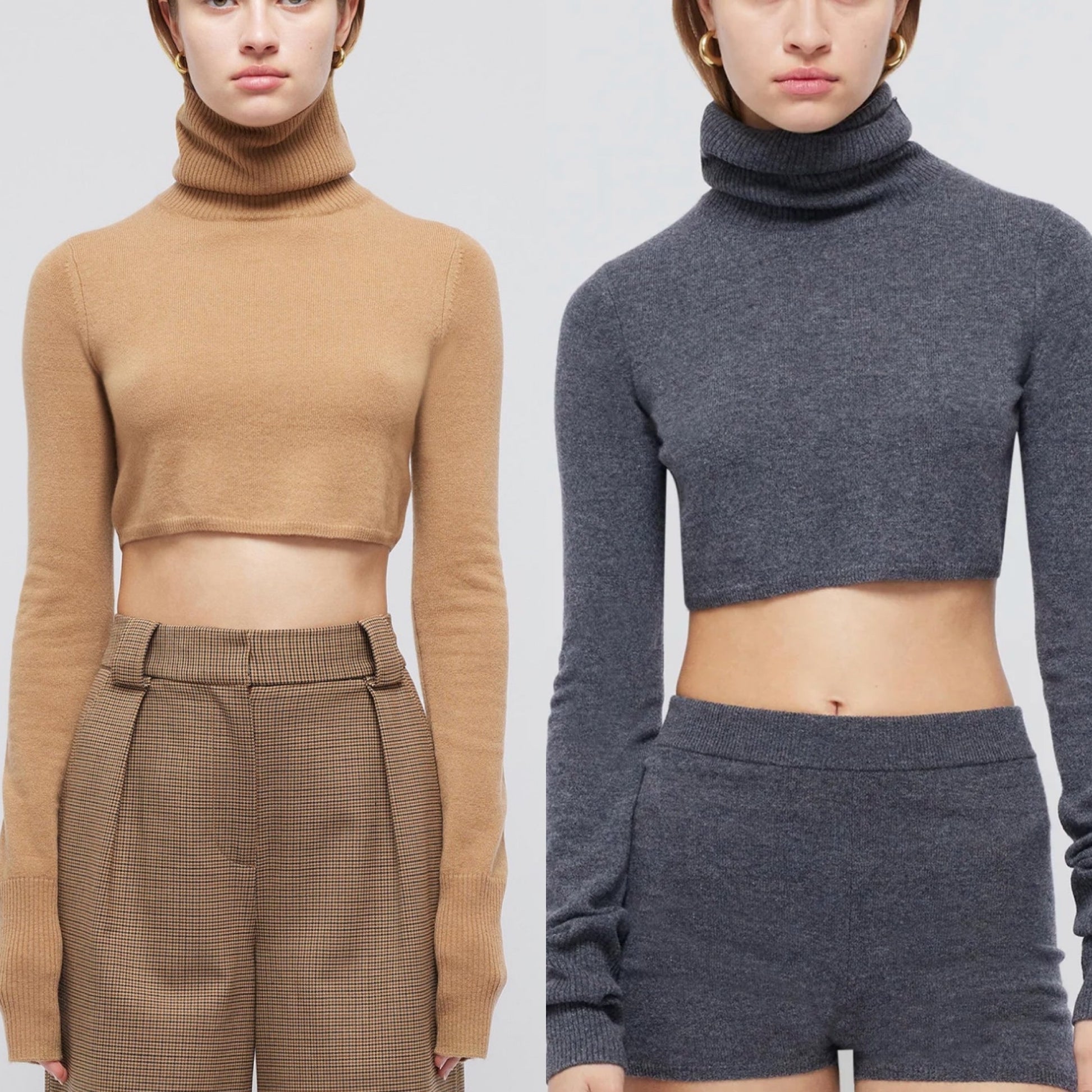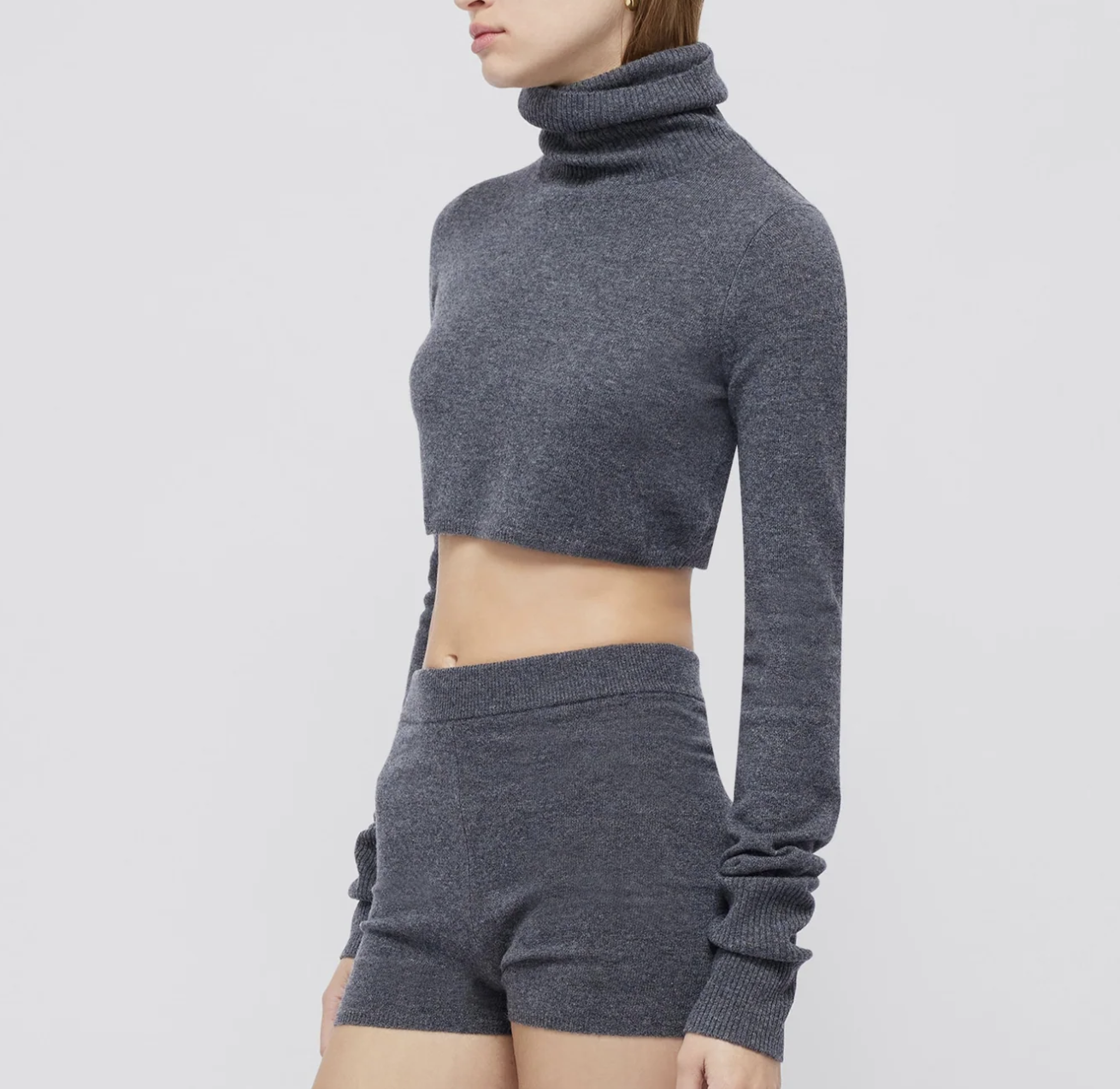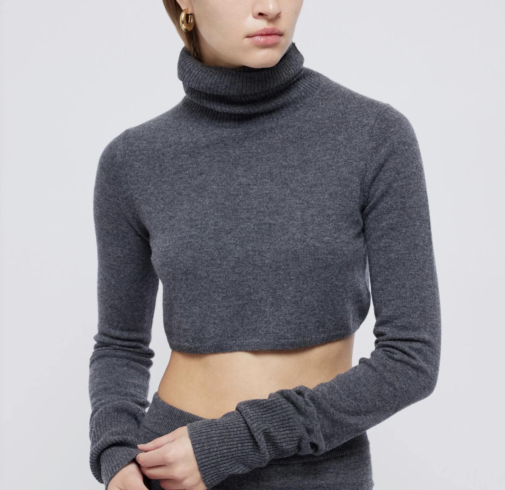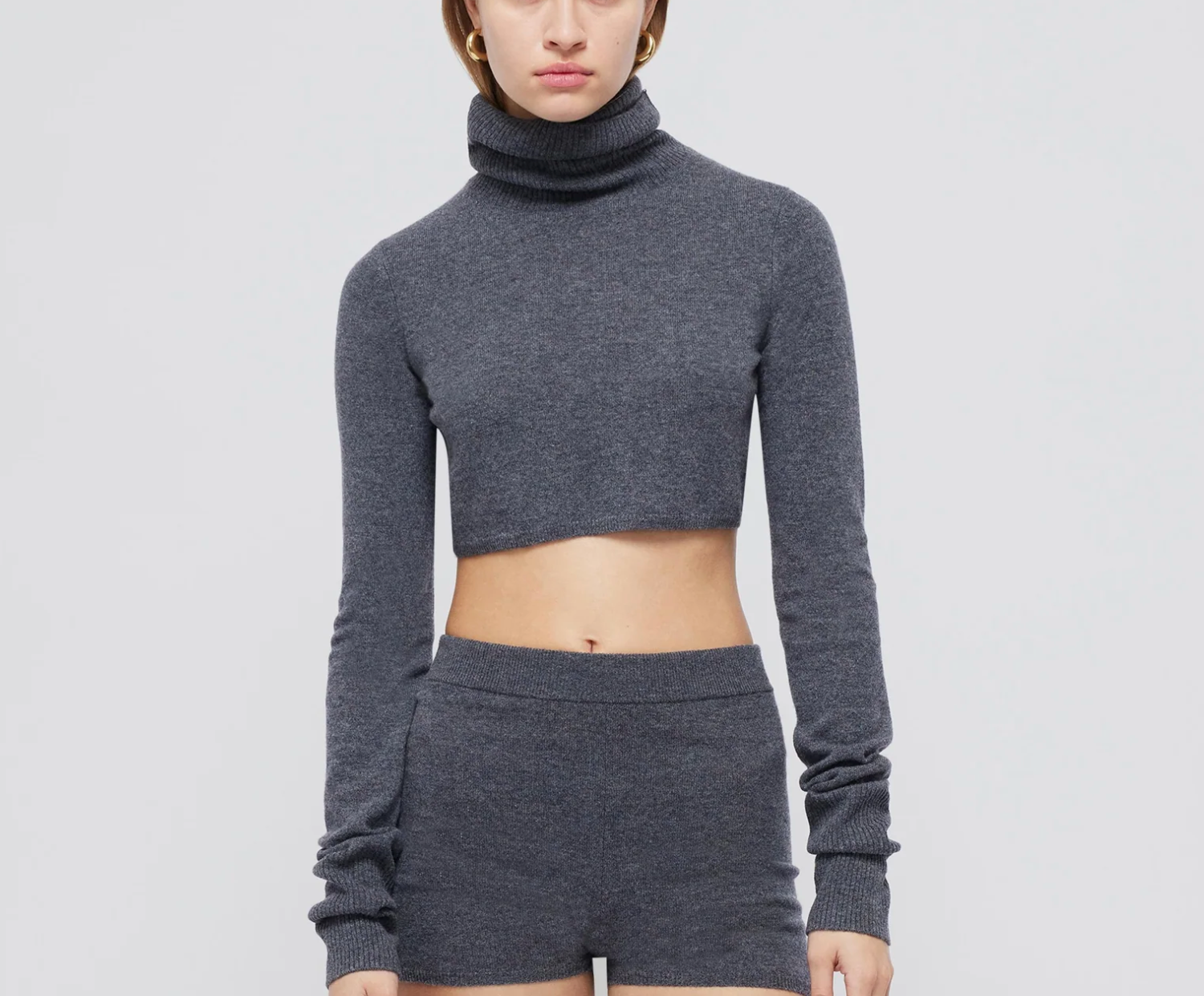 100% cashmere cropped sweater in Camel or Charcoal by Jonathan Simkhai.