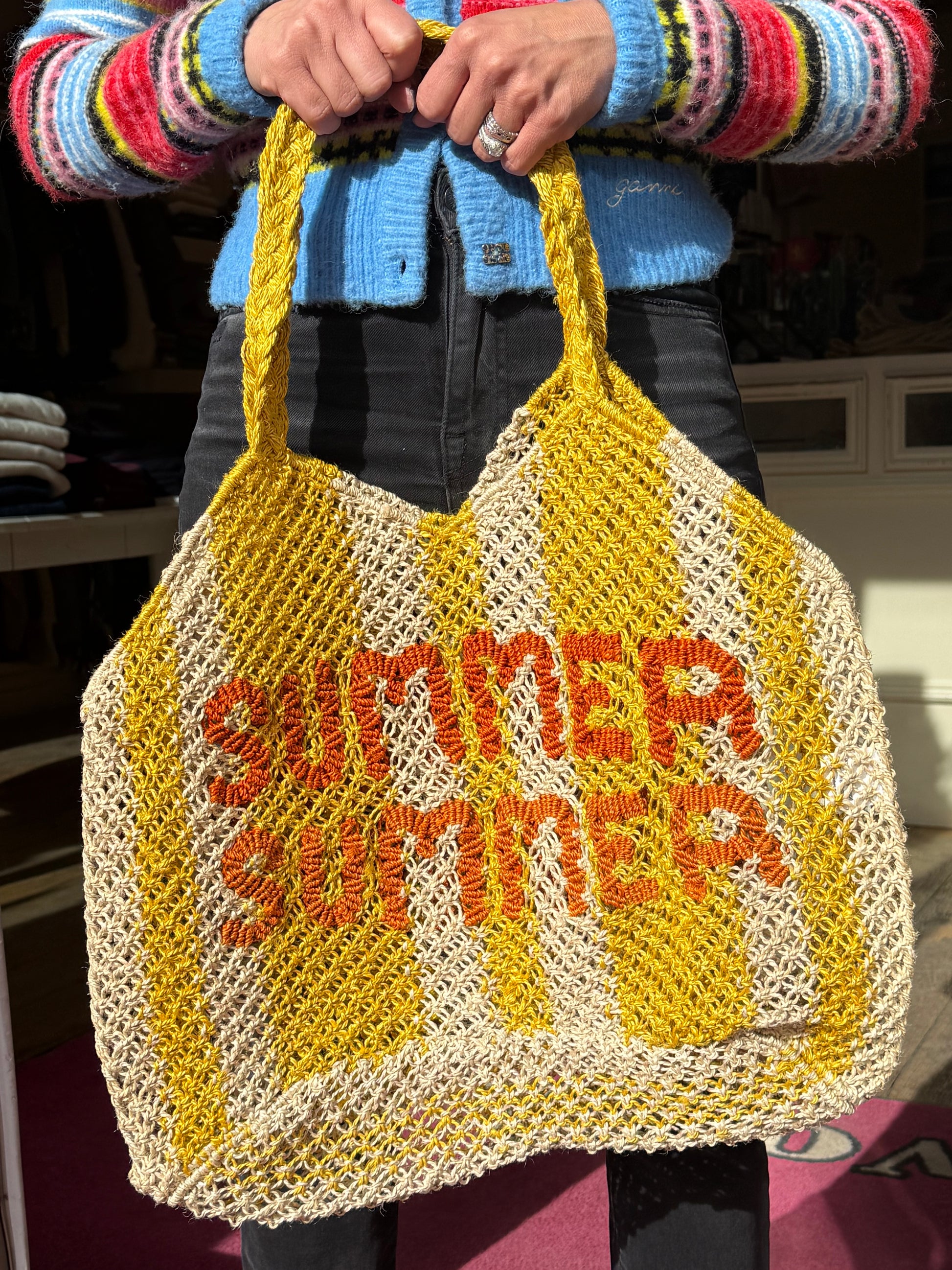 The Jacksons bags are established worldwide as the original jute macrame bags, authentically made by hand. Having spent over 15 years refining and pushing the boundaries of this traditional bag making technique, the brand's unique placement of words and characters are instantly recognisable. Practical and playful, they are designed for everyday use as the perfect shopper, beach bag, travel bag or stylish tote for work or pleasure. Their colourful combinations and positive affirmations are sure to bring joy to your day.
