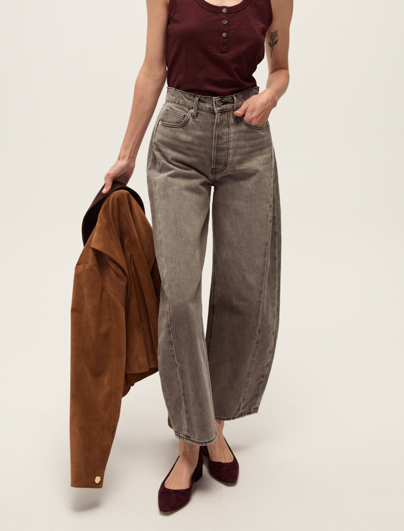 Meet the Ryder, our high-rise barrel jean. Made in LA from non-stretch denim in a faded gray wash, it features a relaxed silhouette that's cut wide from the hips and thighs. Cropped at the ankle.
