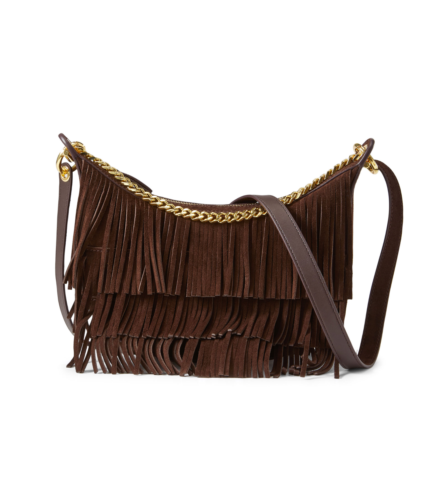 A chic little shoulder bag with day-to-night versatility. The Fortune bag features a softly curved silhouette—compact yet roomy enough for your phone and essentials—defined by a chain-link strap and fully fringed body for a modern bohemian edge. It’s crafted from butter-soft Italian suede for a luxe feel. Finished with a removable, adjustable crossbody strap for ease, it's the perfect bag to take you from desk to dinner.