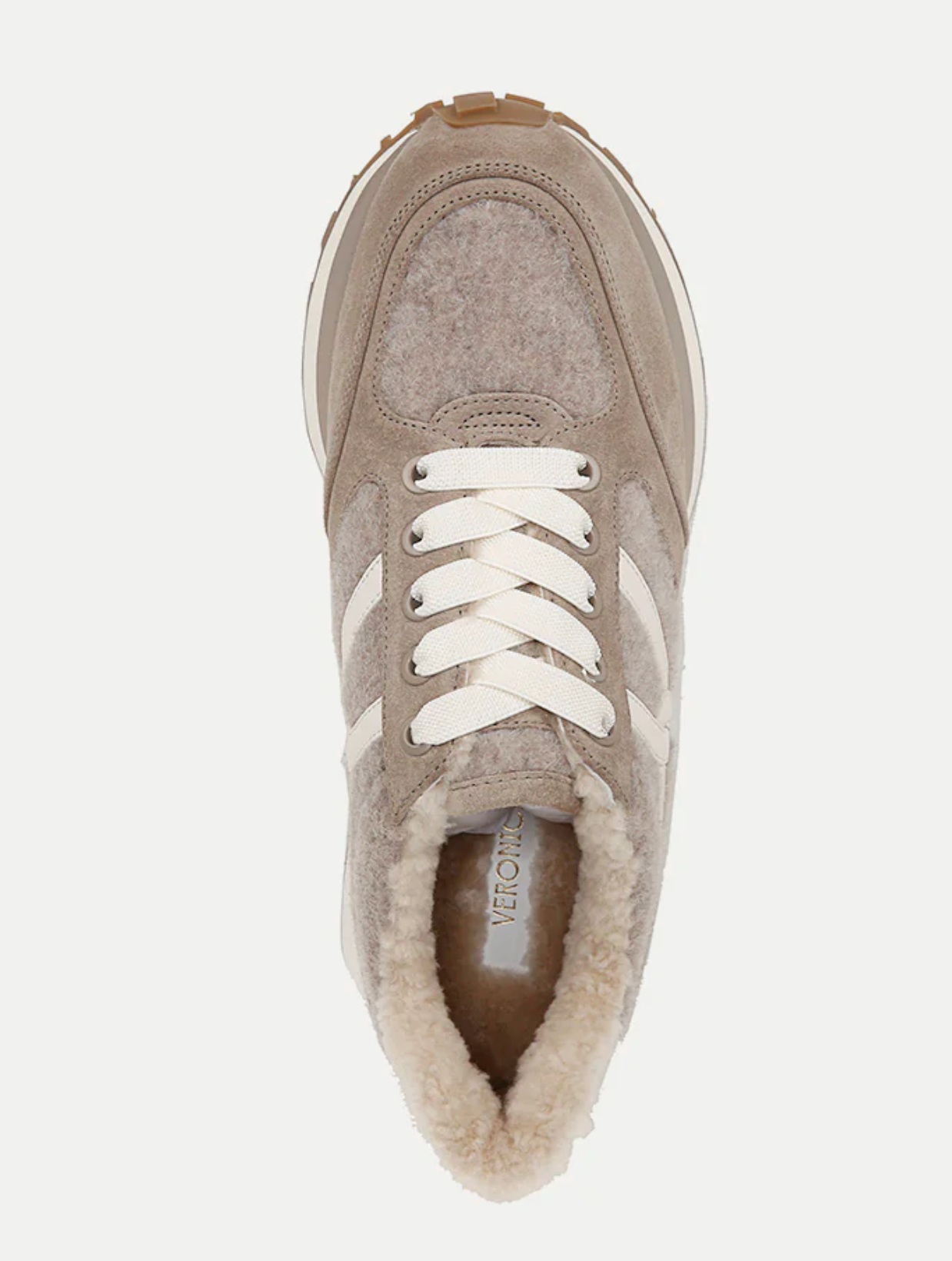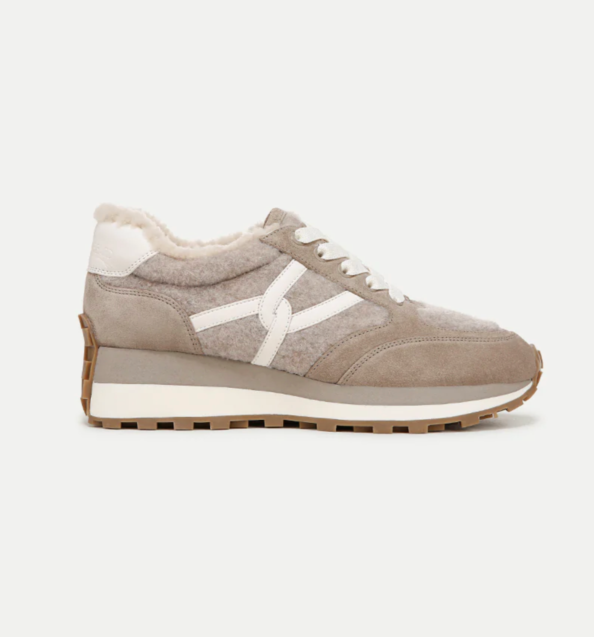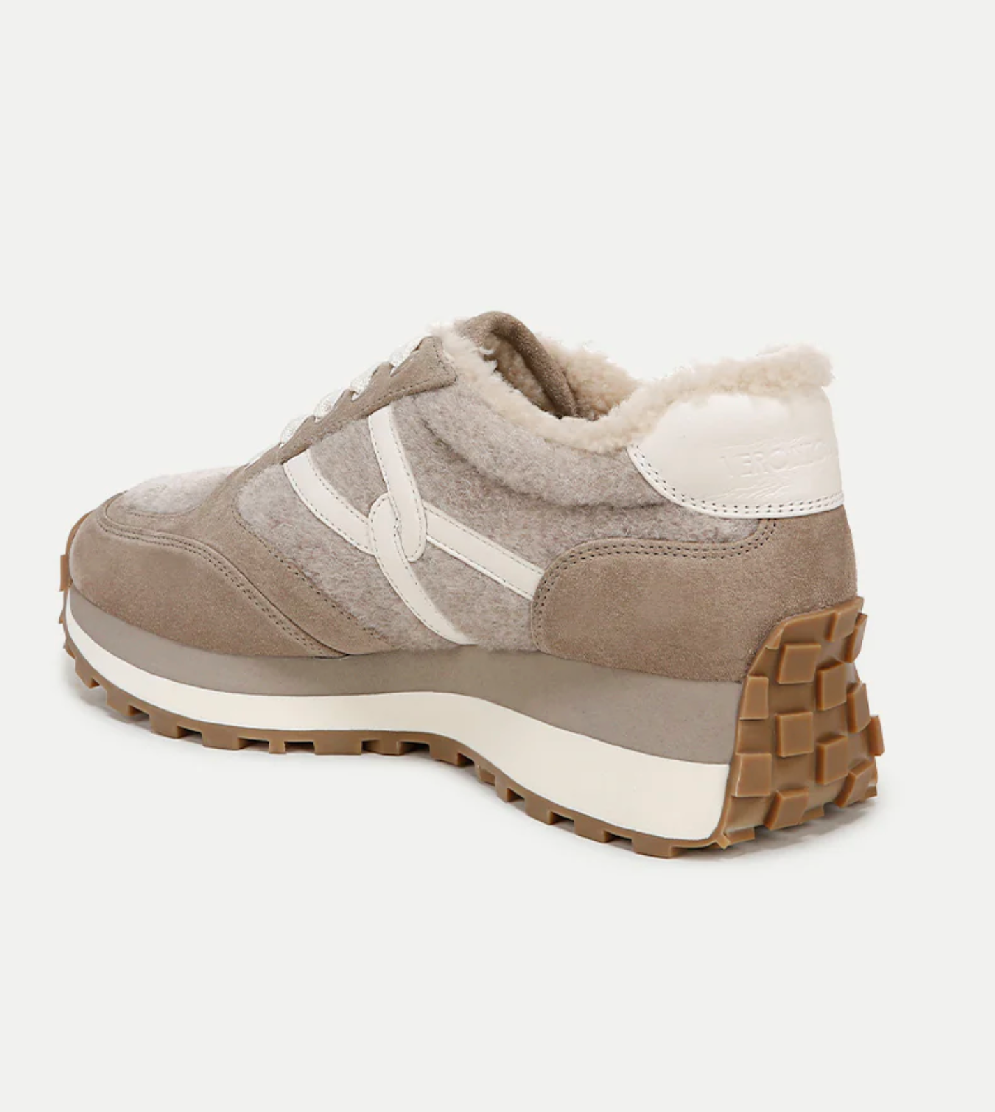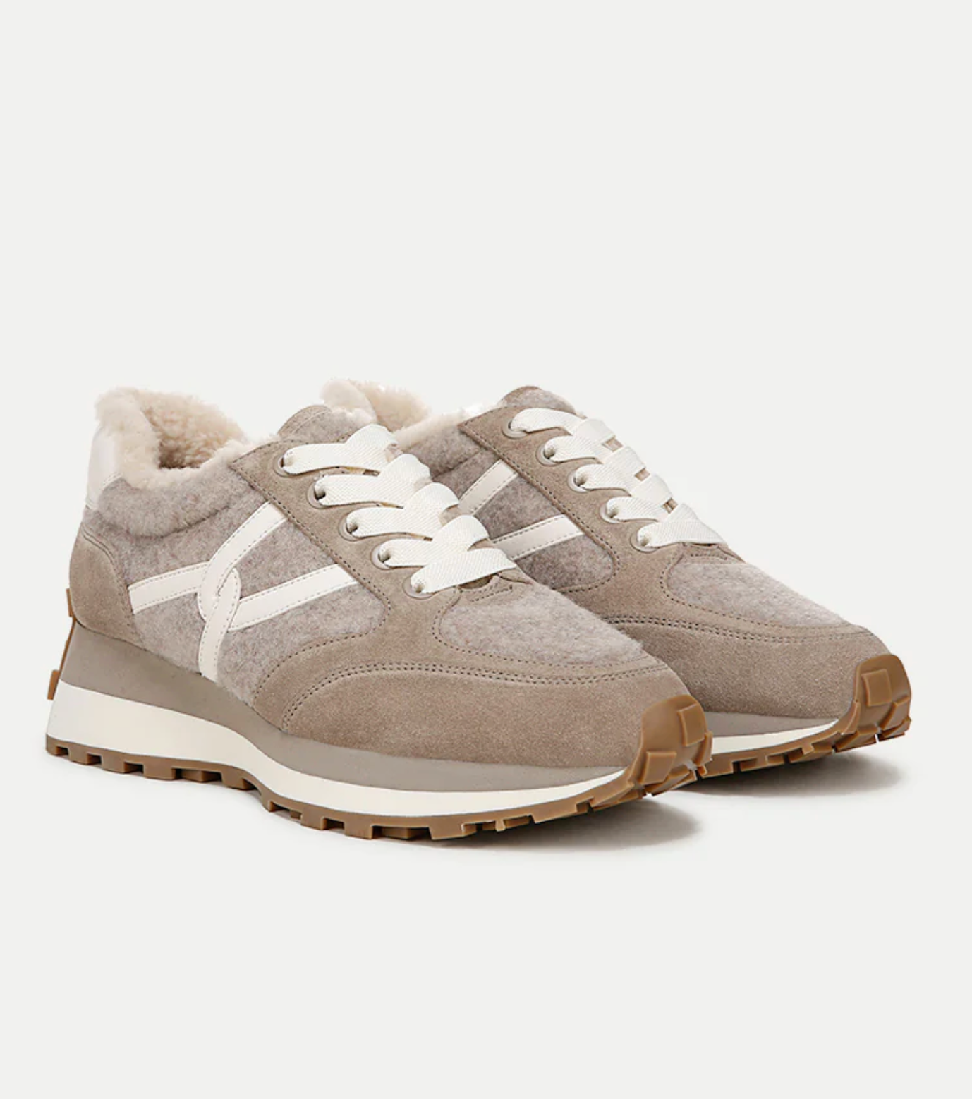 A VB favorite, now with a plush shearling interior. The Valentina sneaker combines flattering lines and comfort: a padded collar, a cushioned midsole, a rubber outsole for grip and suede details in the toe cap and back. The interlocking-V design, meanwhile, is a discreet nod to our logo. This will be your new go-to for those cold-weather days on the move.