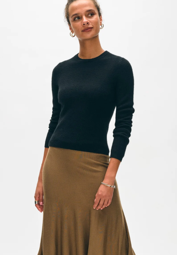 Knit throughout with Lycra, this cashmere crewneck sweater is designed for a slim fit that is as comfortable as it flattering. Featuring clean ribbed trims and a high-hip length.