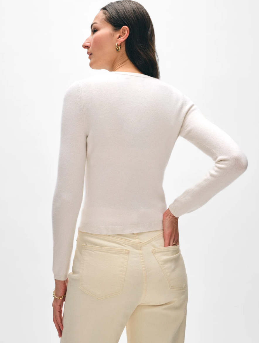 Knit throughout with Lycra, this cashmere crewneck sweater is designed for a slim fit that is as comfortable as it flattering. Featuring clean ribbed trims and a high-hip length.