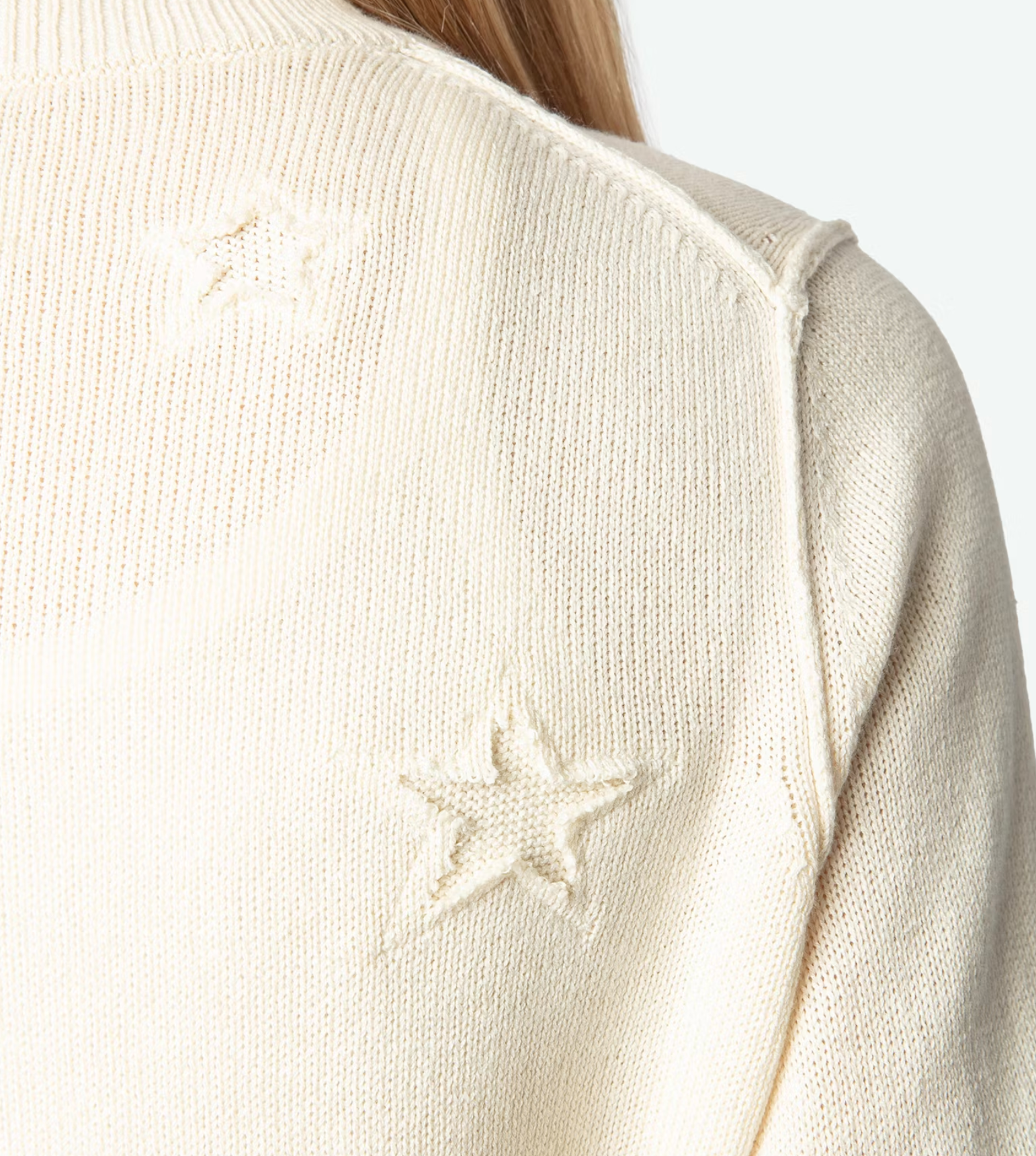 Soft, slouchy, and effortlessly cool. The Alpha cardigan redefines cozy with its oversized fit and relaxed, throw-on-and-go vibe. Featuring distressed star intarsia detailing, it brings a rebellious twist to a classic knit. Layer it over anything—because effortless style never tries too hard.